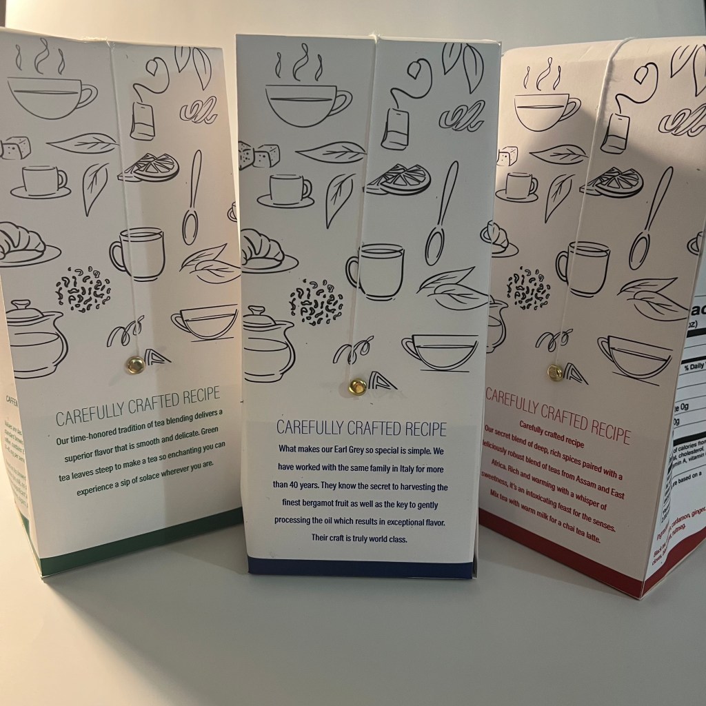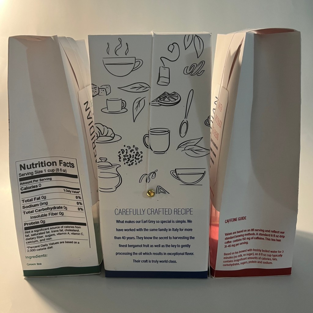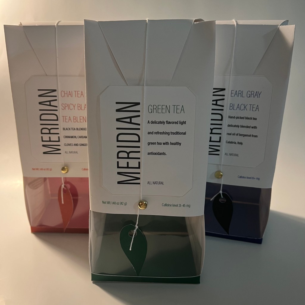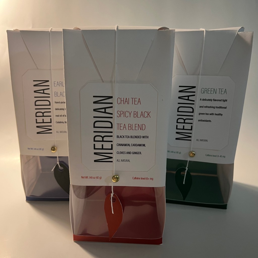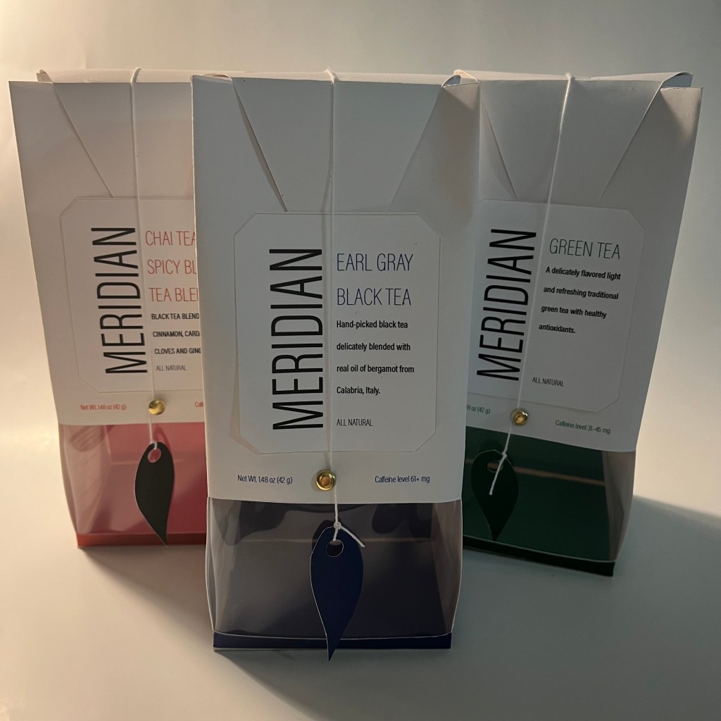 Meridian brand Earl Gray, Green, and Chai Teas